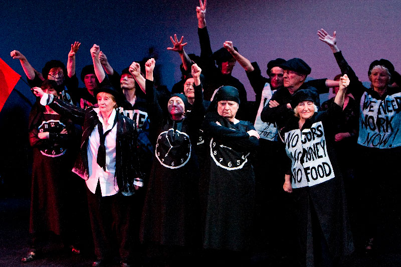 Silent Idols was performed by members of The Dance Ensemble, a group of people aged 50+ who worked with CoisCéim choreographers to create new choreography which drew inspiration from the madcap and theatrical routines by stars such as the Marx Brothers and Buster Keaton.
