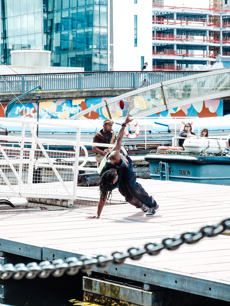 “I am honoured to be invited to be part of this project that reinvisions the canals that act like the veins to Dublin city and the rest of the country. To be able to embody the past history and be part of the new history is something I will hold dear to my heart and cherish, while using Street, Breakin' (Breakdance) and Contemporary dance to paint the space, accompanied by Live DJ and a Saxophone Player." – Tobi Omoteso